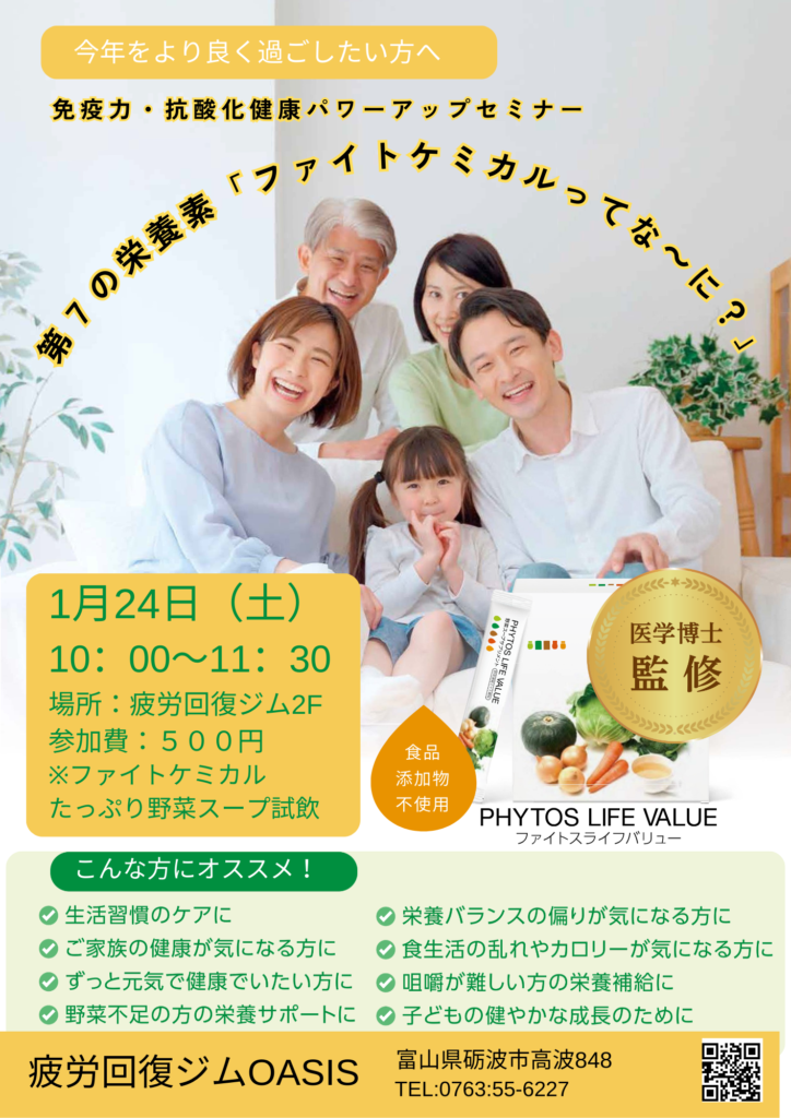 ※当日ファイトケミカルたっぷりの野菜スープを試飲できます